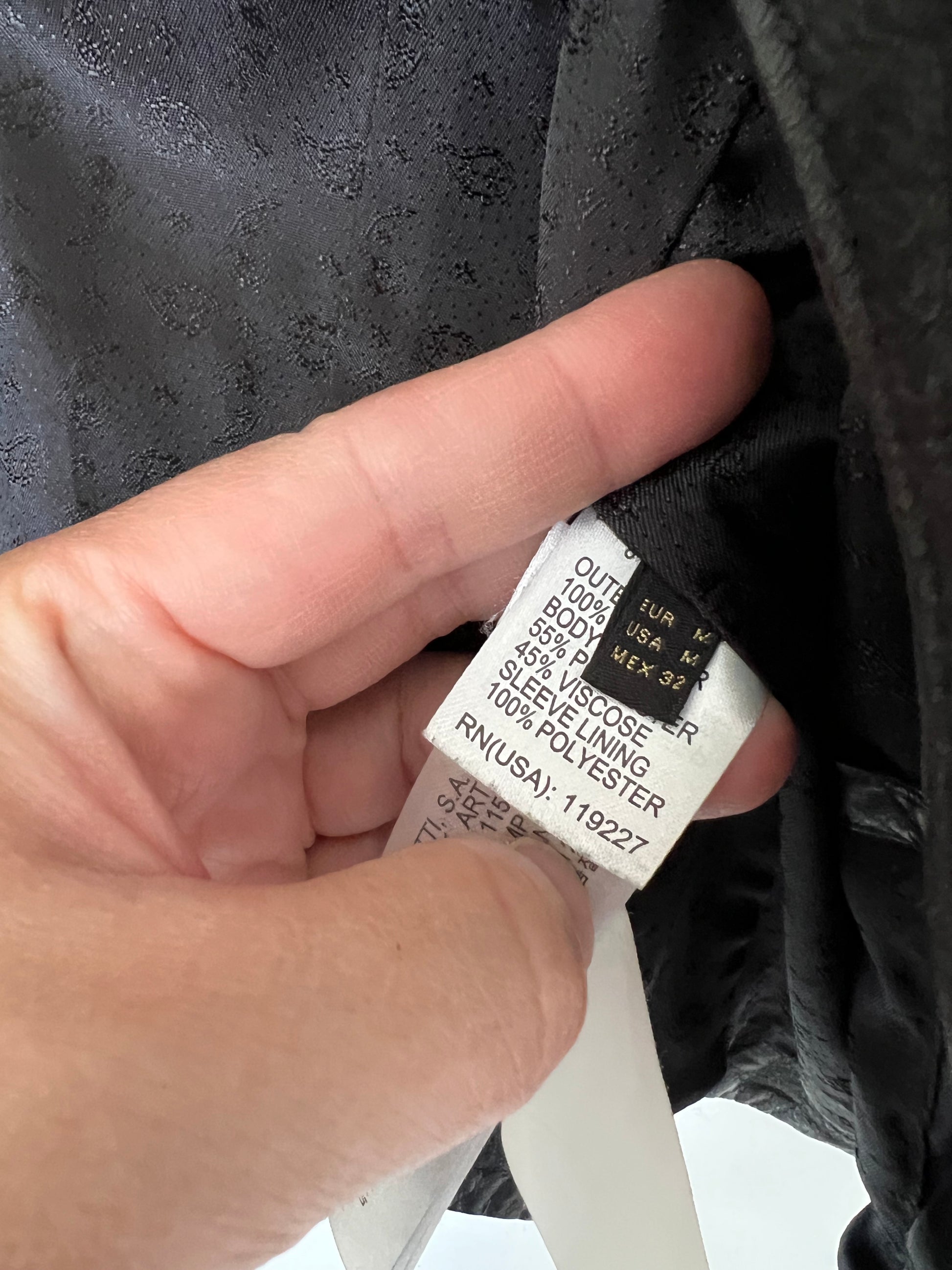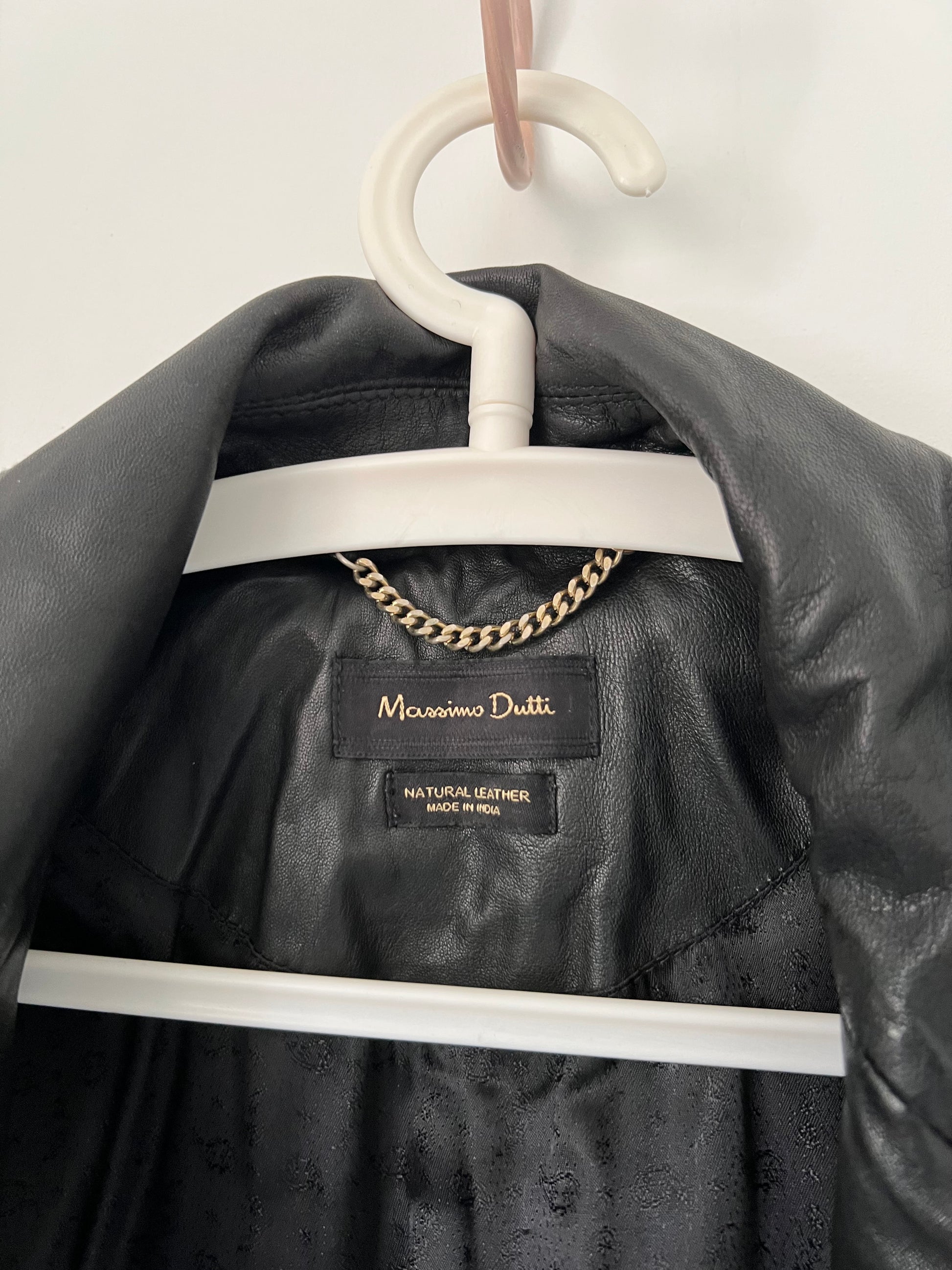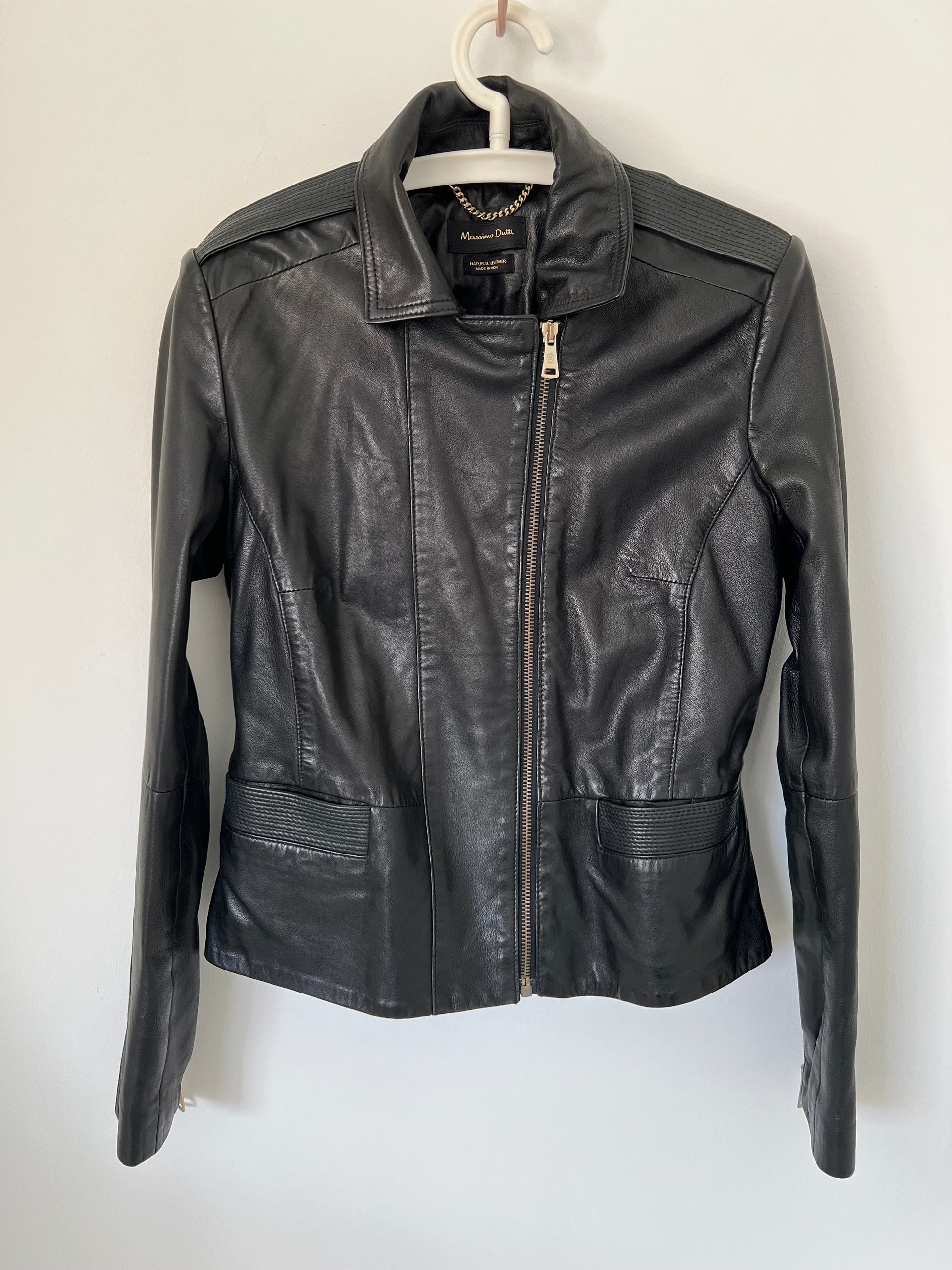 A classic with edge — this second hand black biker jacket in supple napa leather is the kind of piece that speaks without trying. Cool, clean-lined, and quietly confident, it’s finished with faded gold hardware, adding a subtle flash of attitude.